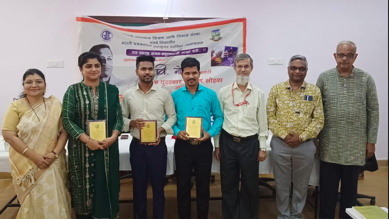 मुंबई : मराठीत युद्धपत्रकारिता रुजवलेले ज्येष्ठ दिवंगत पत्रकार दि. वि. गोखले यांची १०१ वी जयंती मुंबई विद्यापीठाच्या गरवारे व्यवसाय शिक्षण आणि विकास संस्थेच्या मराठी पत्रकारिता वर्गाच्या वतीने मोठ्या उत्साहात साजरी करण्यात आली. यावेळी वार्षिक पुरस्कार वितरण आणि वर्गाच्या ‘गरवारे दर्पण’ या अंकाचे प्रकाशन देखील करण्यात मुक्त पत्रकार आणि युद्धवार्ता अभ्यासक मल्हार गोखले यांचे ‘युद्ध पत्रकार कसे व्हाल?’ या विषयावर व्याख्यान झाले. त्यात त्यांनी आंतरराष्ट्रीय आणि राष्ट्रीय पातळीवरच्या युद्धांची पार्श्वभूमी आणि इतिहास मोठ्या रंजक पद्धतीने विद्यार्थ्यांना समजावून सांगत युद्ध पत्रकारिता वार्तांकनाचे धडे दिले. पत्रकारिता वर्गात प्रथम क्रमांकाने उत्तीर्ण झालेला वर्गाचा माजी विद्यार्थी सुजित शिर्के हा यावर्षीचा दि. वि. गोखले पुरस्काराचा मानकरी ठरला. वर्गाच्या माजी विद्यार्थिनी रेश्मा साळुन्खे यांना विद्याधर गोखले पुरस्कार तर बाळकृष्ण परब यांना डॉ. अरुण टिकेकर पुरस्कार प्रमुख पाहुणे मल्हार गोखले यांच्या हस्ते प्रदान करण्यात आला. अखिल भारतीय साहित्य परिषद कोकण प्रांत आणि गरवारे व्यवसाय प्रशिक्षण संस्था यांच्या वतीने घेण्यात आलेल्या राज्यस्तरीय लेखन स्पर्धेचे पुरस्कार वितरण देखील या कार्यक्रमात झाले. या स्पर्धेत प्रथम क्रमांक नंदा कोकाटे यांना, द्वितीय क्रमांक दिपाली मराठे, आणि तृतीय क्रमांक डॉ.मीनल आरेकर यांना मिळाला, तर विजय कामत आणि सिमरन दराडे यांना उत्तेजनार्थ पुरस्कार देण्यात आले. हे पुरस्कार अखिल भारतीय साहित्य परिषदेचे कोकण प्रांत अध्यक्ष आणि पत्रकार दुर्गेश सोनार तसेच संस्थेचे कार्यवाह प्रवीण देशमुख यांच्या हस्ते देण्यात आले. कार्यक्रमाचे प्रास्ताविक पत्रकारिता वर्गाच्या वर्ग-समन्वयक नम्रता कडू यांनी केले.डॉ.नरेंद्र पाठक आणि प्रशांत कुलकर्णी हे या कार्यक्रमाला उपस्थित होते. पुरस्कार विजेत्या माजी विद्यार्थ्यांनी याप्रसंगी आपले मनोगत व्यक्त केले.