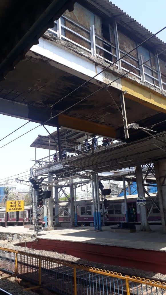 वसई रेल्वे स्थानाकात पूर्व व पश्चिम तसेच फलाट क्रमांक २, ३ व ४ ला जोडणारा पादचारी पूल आहे. या पुलावरून प्रवाशांची नेहमीच वर्दळ सुरु असते. एकाच वेळी दोन्ही ठिकाणच्या फलाटावर जर ट्रेन आली, तर मोठी गर्दी या पादचारी पुलावर होत असते. मात्र हा पूल धोकादायक असल्याचे दिसून आले आहे. ‘सध्या हा पादचारी पूल जीर्ण झाला असून कोणत्याही क्षणी हा पूल कोसळण्याची भीती व्यक्त केली जात आहे. या पुलाची दुरुस्ती होणे गरजेचे आहे, असे प्रवाशांनी सांगितले.या पुलावरील टाकण्यात आलेला स्लॅबही हळूहळू कोसळून खाली पडला असून त्याच्या मध्ये असलेल्या लोखंडी सळ्याही दिसू लागल्या आहेत. याचे फोटोसहीत दुरुस्ती करण्यासाठी वसईचे युवक अध्यक्ष कुलदीप वर्तक यांनी रेल्वे मंत्री पियुष गोयल,मुख्यमंत्री देवेंद्र फडणवीस यांना ट्विट केले होते. त्यांनी याबाबत दखल घेवून लक्ष देण्यासाठी संबंधित अधिकाऱ्यांना सांगितले होते. त्यानुसार चौकशी साठी गेलेले कुलदीप यांची स्टेशन मास्तरांनी काम सुरु असल्याचे सांगितले व तुम्ही लोकांची दिशाभूल करीत असल्याचे सांगून आपल्या अकलेचे तारे तोडले आहेत. वरिष्ठांनी दिलेल्या त्या आदेशाला वसई तील अधिकाऱ्यांनी केराची टोपली दाखवली असून एल्फिन्स्टन,सीएसएमटी पूल दुर्घटनेच्या पुनरावृत्तीची वाट हे अधिकारी पाहतात का ? असा सवाल वर्तक यांनी विचारला आहे.