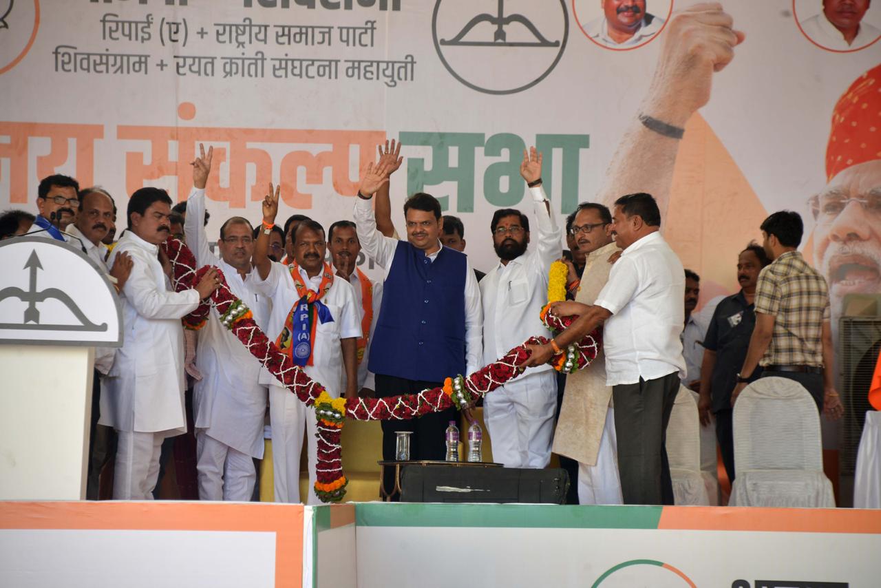 ते पुढे म्हणाले कि वाघ आणि सिंह एकत्र आल्या नंतर जंगला मधील कितीही लांडगे आणि कोल्हे एकत्र आले तरी ते लढाई जिंकू शकत नाही.आता हि लढाई वाघ आणि सिंहच जिंकणार आहे.वाघ आणि सिंह एकत्र आल्यावर काय होत बघा हिंदीत म्हणतात शिट्टी पिट्टी गुम नो शिट्टी..या निवडणुकीत फैसला हाच करायचा आहे. देश भक्ता सोबत राहायचं कि भ्रष्टाचाराच्या सोबत राहायचं ,देशाला स्वाभिमानाने उभं करणाऱ्या सोबत राहायचं कि देश विकणाऱ्यांना मदत करणाऱ्या सोबत राहायचं याचा फैसला करणारी निवडणूक आहे. हितेंद्र ठाकूर यांचे नाव न घेता काही लोकांना जेलमध्ये जाण्याची घाई झाली आहे.ते म्हणतात तुमची वेळ आली कि तुमचा नंबर लावू आमच्या कोठडी मध्ये खूप लोक लाईन लावून आहेत.एकच कोठडी नाही आहे.पुष्कळ कोठड्या आहेत.जेजे भ्रष्टाचार,दुराचार,अनाचार करतील त्या प्रत्येकासाठी कोठडी तयार ठेवली आहे.ज्याचा ज्याच्या मनामध्ये कोठडीत जायचं आहे.त्यांना तथास्तु म्हटल्या शिवाय आम्ही राहणार नाही.यावेळी शिवसेना नेते एकनाथ शिंदे यांनी आम.हितेंद्र ठाकूर यांचे नाव न घेता त्यांचा तोल जातो ते बेहोष असतात असा टोला लगावला. ते पुढे म्हणाले कि त्यांना उद्धव ठाकरेंवर बोलण्याचा नैतिक अधिकार नाही आहे.गोरगरीब जनतेच्या पाठीशी उभे राहण्याचं काम उद्धव ठाकरे यांनी केल तर तुम्ही सर्वसामान्य माणसाची जमीन हडप करण्याचे काम केल,तुम्ही सर्वसामान्य माणसाला बेघर करण्याचे काम केलंय,आदिवासींना लुटण्याचे काम केलंय बाळासाहेब म्हणायचे गुंड असावा पण षंढ नसावा पण तो गुंड कसा असावा तो मायाभागिनी चे रक्षण करणारा असावा तुम्ही त्यांच्या पाठीत खंजीर खुपसणारे सर्वसामान्य लोकांचे जमिनी हडपून मोठमोठे टॉवर उभे करणारे तुम्ही ,याठिकाणी अनेक लोकांचे खून मुडदे पडणारे तुम्ही. ठाकूर यांनी जेल मध्ये जाण्याची इच्छा व्यक्त केली असून ती लवकर पुरी करा असे शिंदे यांनी यावेळी मुख्यमंत्री देवेंद्र फडणवीस यांना सांगून ठाकुरावर घणाघात केला. या सभेला मुख्यमंत्री देवेंद्र फडणवीस ,राज्यमंत्री रवींद्र चव्हाण,सार्वजनिक बांधकाम मंत्री एकनाथ शिंदे ,उमेदवार राजेंद्र गावित,आगरी सेनेचे जनार्धन पाटील,आरपीआयचे ईश्वर धुळे यांच्यासह अनेक मान्यवर व्यासपीठावर उपस्थित होते. बहुसंख्य लोकांनी या सभेसाठी गर्दी केली होती.
